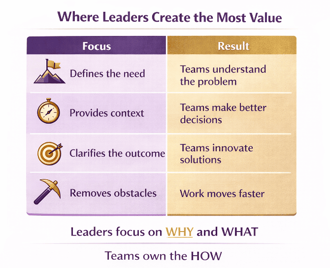 When leaders focus on the what and why, teams can bring creativity, expertise, and ownership to the how.