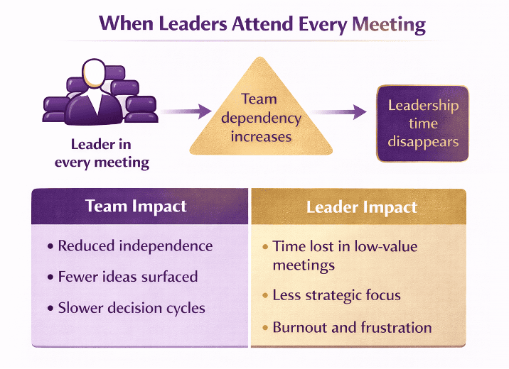 Second, leaders spend enormous amounts of time in meetings where their presence adds little strategic value.